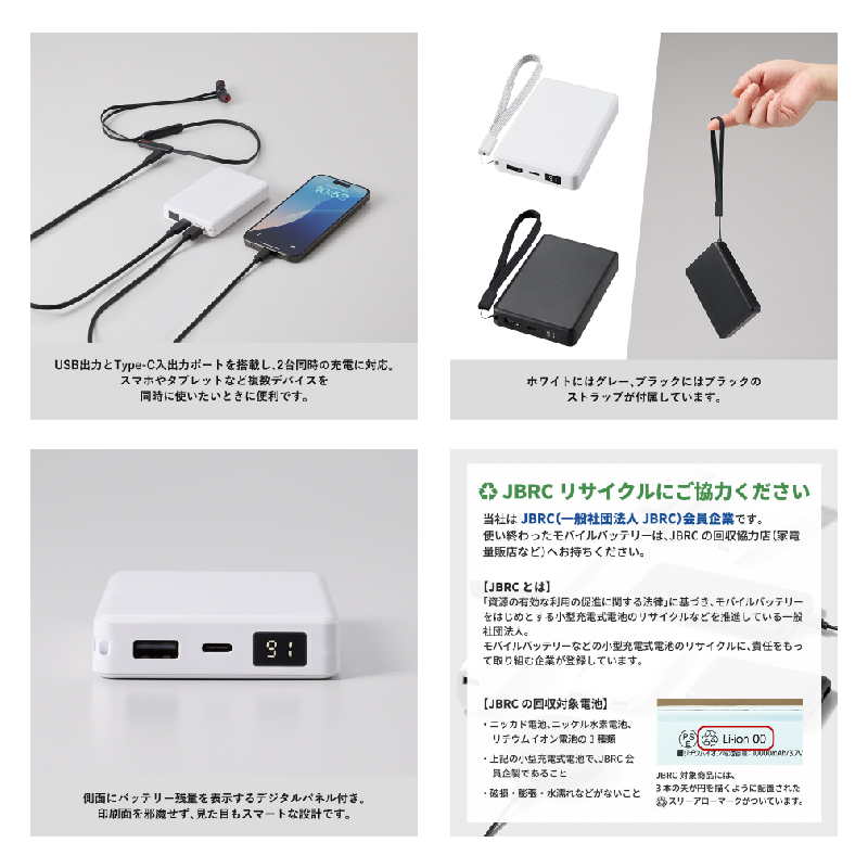 ストラップ付モバイルバッテリー8000mAh(残量デジタル表示)TW